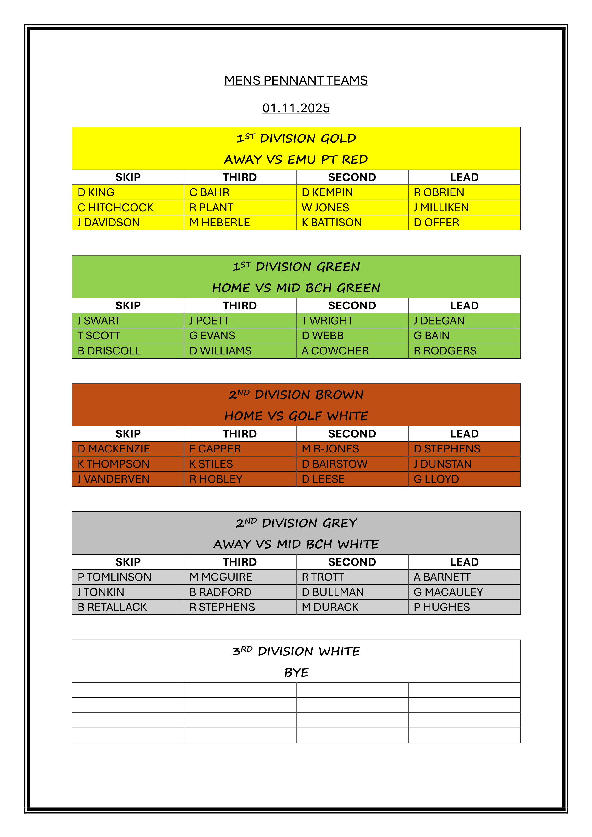 MENS THIRD DIVISION FIXTURES 2025/26...….CLICK HERE