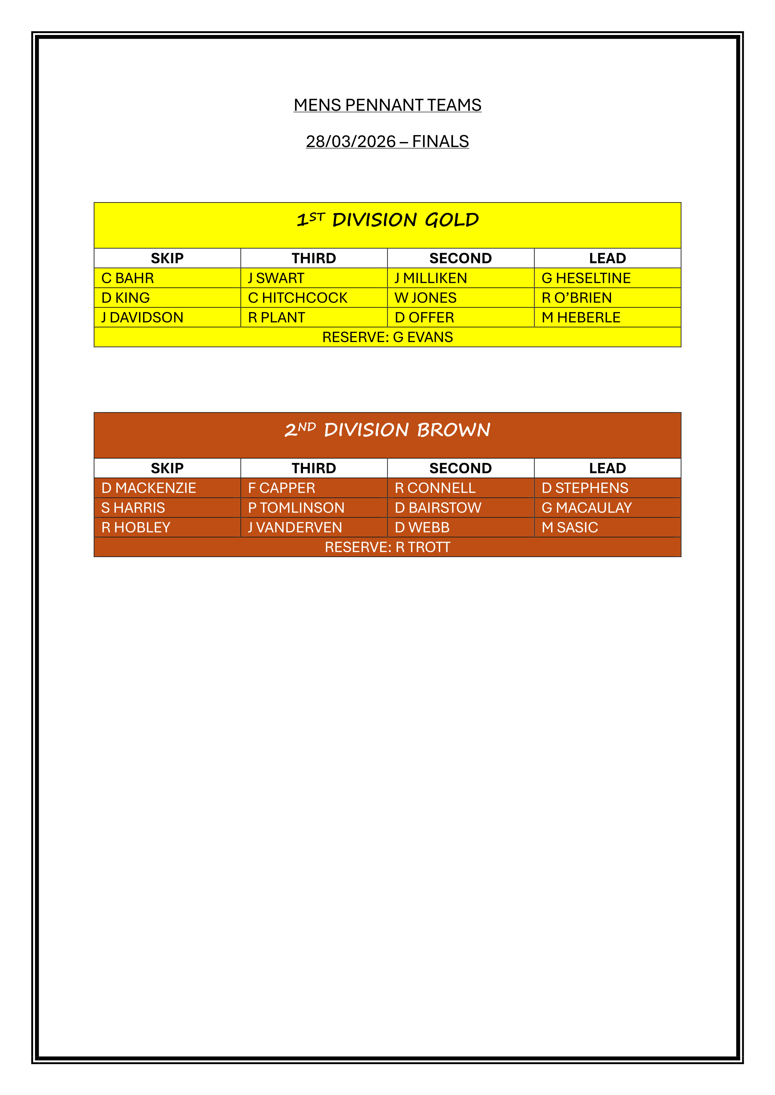 MENS FIRST DIVISION FIXTURES 2025/26...…CLICK HERE